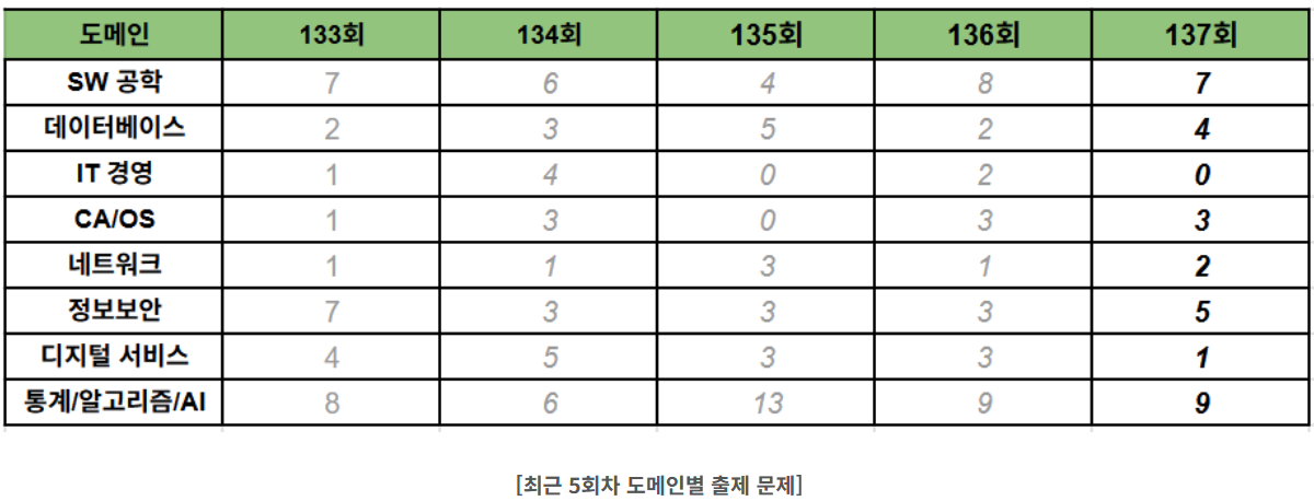 - 최근 3년간 출제되지 않은 도메인
