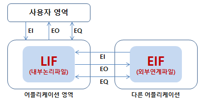 ISO/IEC 14143, 기능점수, 데이터기능점수(ILF, ELF), 트랜잭션기능점수(EI, EO, EQ) |
