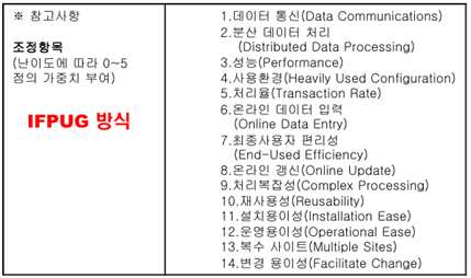 기획, 발주 단계에서 사용하며 평균 복잡도를 적용하여 기능 점수 산정 |