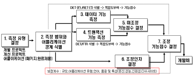 - 소프트웨어의 크기를 결정하는 소프트웨어 기능 유형 별 수량과 성능 및 품질 요인들의 영향도를 고려하여 계산되는 SW 규모 산정 방식