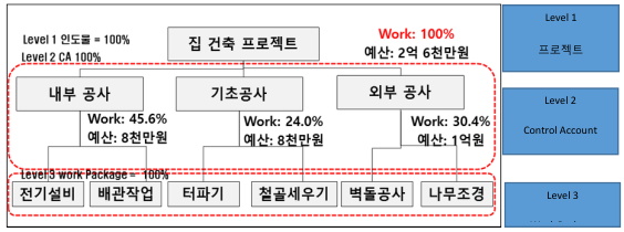 - 100% Rule : WBS 작성의 각 레벨의 작업량 합이 100%가 되어야 하며, 각 레벨 별 예산의 합도 전체 예산의 100%가 되게 WBS를 작성해야 한다는 이론 및 방법론