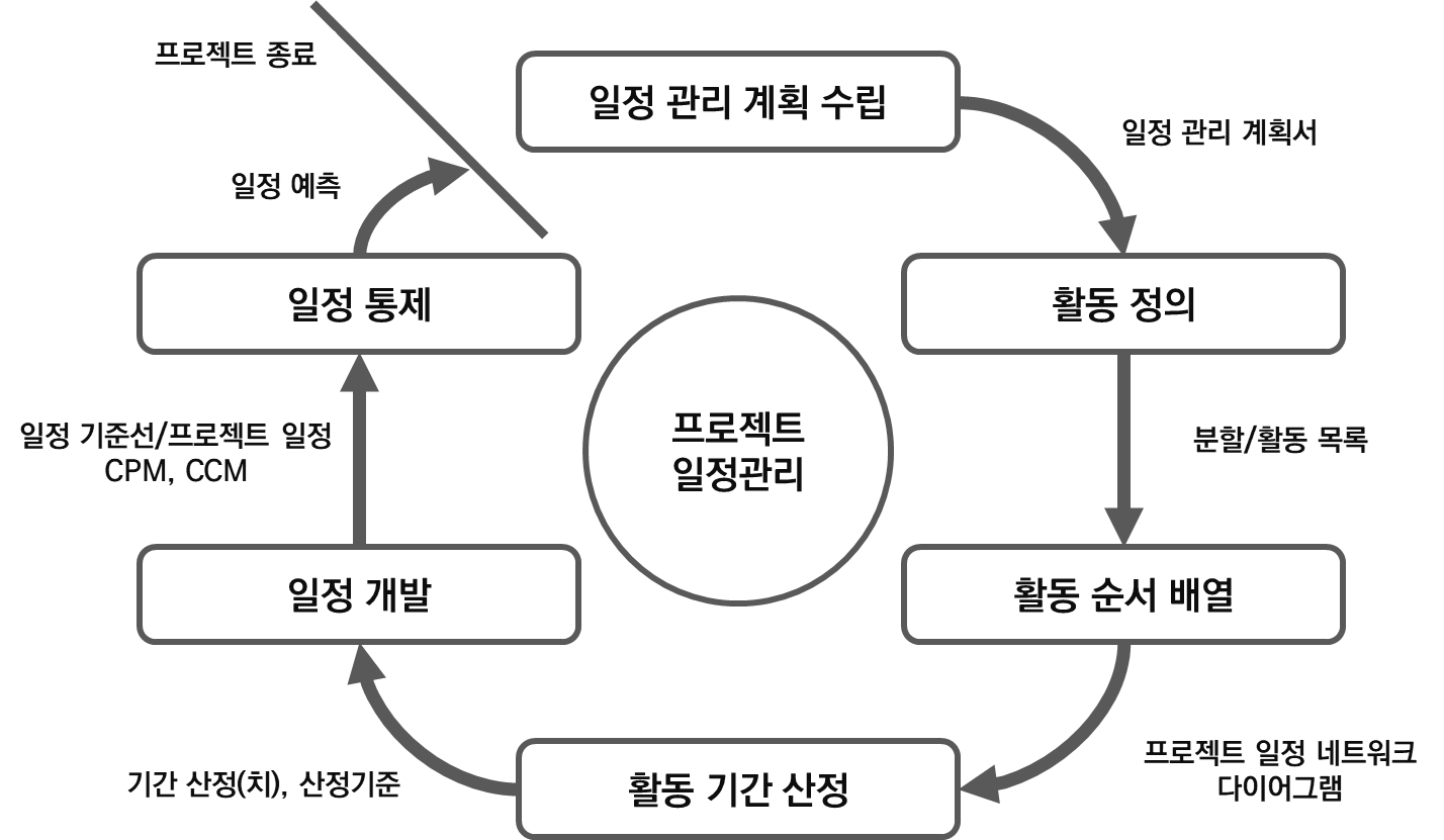 - Activity를 정의하고 Activity의 수행 순서와 기간으로 프로젝트 일정을 개발하고 관리