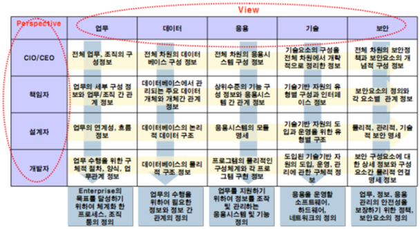 - 아키텍처를 정의하기 위한 아키텍처 구성요소들과 이해관계자를 구조화한 것