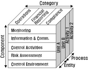 - 미국 내 AICPA등 재무, 회계 전문 단체의 연합으로 조직의 재무, 운영, 컴플라이언스에 관계된 내부 통제의 효과성을 보장하는 프레임워크