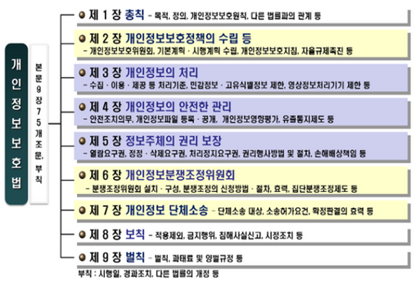 - 개인정보의 수집, 유출, 오용, 남용으로부터 사생활의 비밀 등을 보호함으로써 국민의 권리와 이익을 증진하고, 나아가 개인의 존엄과 가치를 구현하기 위하여 개인정보 처리에 관한 사항을 규정함을 목적으로 하는 대한민국 법률