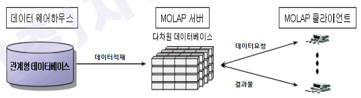 - 다차원 데이터를 처리하기 위하여 다차원 DB와 RDB를 병행하여 사용 |