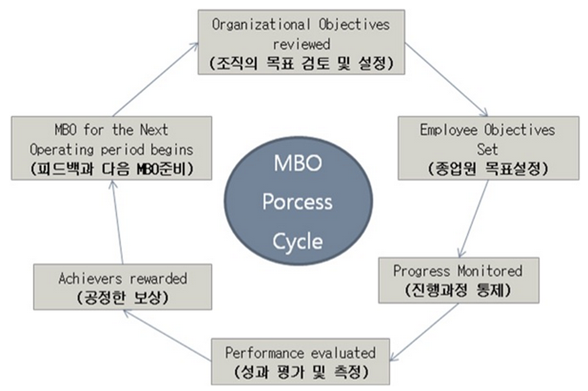 - 상사와 부하가 합의하에 특정 시점까지의 구체적인고 측정 가능한 목표를 설정하고 실행 계획을 수립하며, 목표 달성을 위해 공동으로 노력함으로써 조직 전체의 목표를 달성하도록 관리하는 기법