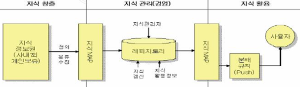 - 기업의 목표달성을 위하여 조직 내외에 산재해 있는 지식을 획득하고 조합하여 체계적으로 공유 시키는 제반 활동