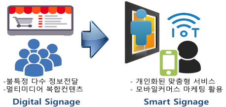 - 다수에게 광고를 제공하는 디지털 사이니지에서 개인 맞춤형 스마트 사이니지로 발전