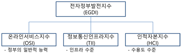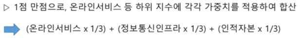 - 3개의 하위 지수인 온라인서비스 지수, 정보통신 인프라 지수, 인적자본 지수로 구성