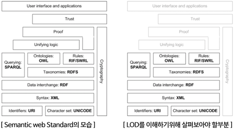 - URI로 정보를 찾았을 때 RDF, SPARQL과 같은 표준을 활용해서 유용한 정보 제공 |