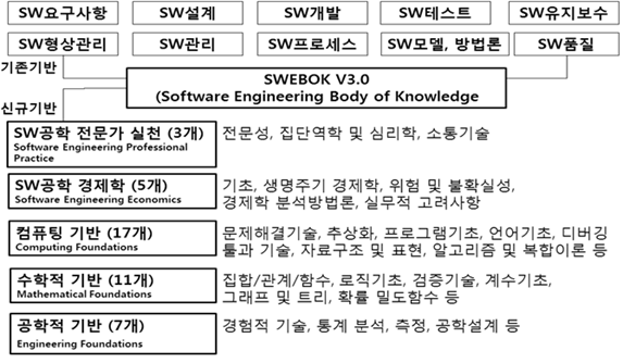 - 소프트웨어 공학 분야의 지식 체계에 대한 국제 표준 (ISO/IEC 24773)으로 전문 소프트웨어 엔지니어가 갖추어야 할 요소들과 지식들을 정리해 놓은 표준 문서