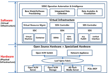 - 데이터센터를 구성하는 플랫폼, 공통 영역 및 관리 시스템 전 영역을 소프트웨어 정의로 구현