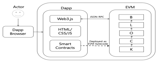 - Front End는 사용자의 특성을 고려하여 다양한 형태 (Web / App)로 개발 - Back End는 스마트 컨트랙트를 기준으로 동작 |