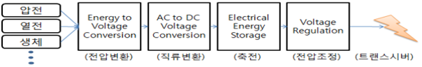 - 자연에 존재하는 다양한 자원으로부터 버려지거나 활용되지 않는 에너지를 수확 또는 이용할 수 있는 전기적 에너지를 획득, 재생산하는 기술