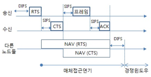 - DIFS (다음 동작까지 기다려야하는 최소 시간), SIFS (가장 짧은 대기지연시간)