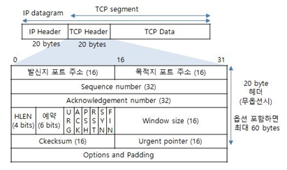 4바이트 단위로 표시 (TCP 헤더 길이는 총 60바이트 이하) |