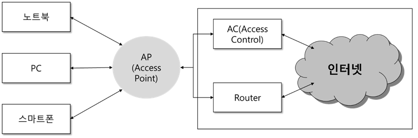 - IEEE 802.11 표준 기반으로 다수의 기기들이 무선으로 LAN에 접속 가능하게 하는 통신기술