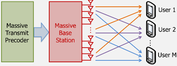 - 기지국에 수십 혹은 수백 개의 안테나를 장착하여 동일 자원으로 수십 명의 사용자를 동시에 지원함으로 인해 높은 용량과 에너지 효율 증대 ![]() |