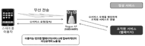 - AP 접속자의 정상적인 서비스 접속 요청에 변조된 응답을 전송하여 사용자 기밀정보를 취득할 수 있음 |