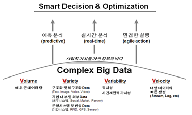 - 예측, 예견, 모의실험, 최적화 등의 예측 모델을 통해 미래의 의사결정