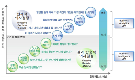 - 결과 반응적 의사결정의 한계를 갖는 Business Intelligence보다 발전