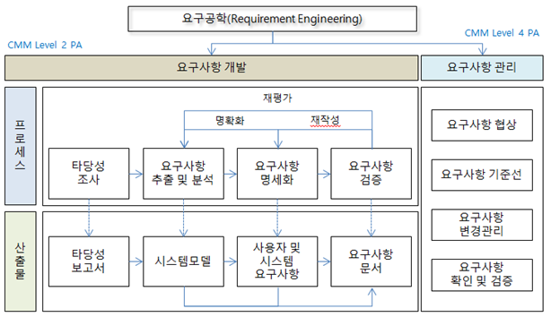 - 요구사항의 도출, 분석, 명세, 검증 및 변경 관리 등에 대한 제반 활동과 원칙에 대한 체계적인 공학적 접근 방법