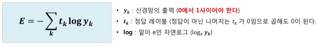 - 신경망의 지도학습에서 학습 데이터에 대한 오차를 측정하는 척도