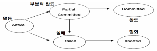 - 초기 상태, 트랜잭션이 실행 중이면 동작 상태에 있다고 할 수 있다. |
