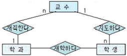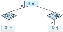 - 한 개의 개체 집합이 둘 이상의 1:n 관계성 집합을 갖는 경우로 마치 부채꼴 형상 |