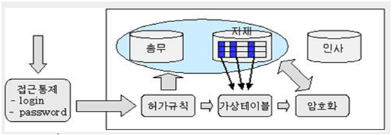 - 정당한 절차를 통한 DBMS 접근 사용자도, 허가 받지 않은 데이터의 접근을 방지 |