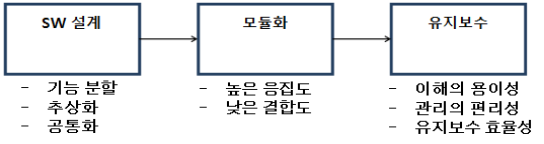 프로그램을 효율적으로 관리할 수 있도록 하는 소프트웨어의 특성으로 시스템 분해 및 추상화를 통해 소프트웨어 성능 향상을 위한 적합한 프로그램 단위 |