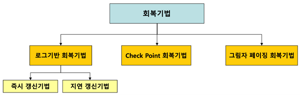 REDO, UNDO, 로그기반 회복기법, 체크포인트 회복기법, 그림자페이징 회복기법 |