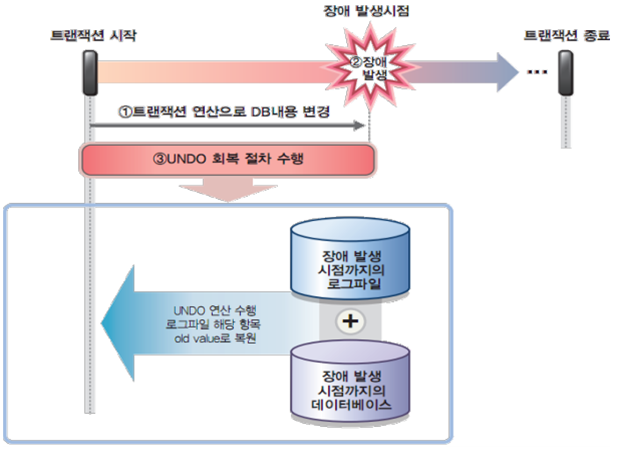 - 장애 발생 시 데이터베이스에 대한 모든 변경사항, Commit되지 않은 트랜잭션에 대한 작업을 취소함으로써 데이터베이스 일관성 유지, 원래 데이터베이스 상태로 복원