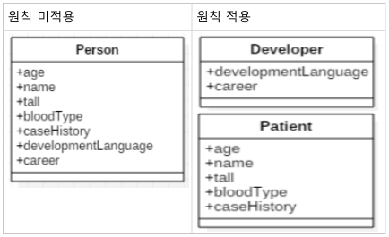 하나의 클래스는 하나의 책임만을 가져야 한다 |