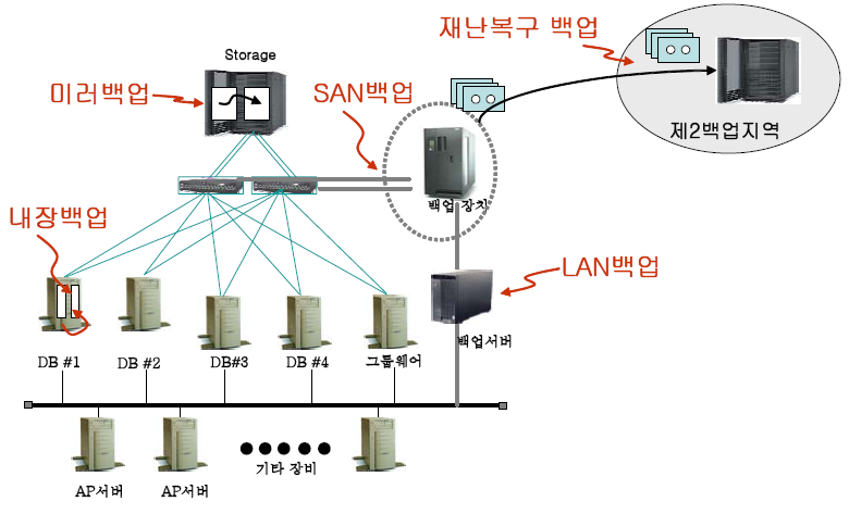 - 백업주기에 대한 수행 시기 정의 - 백업에 대한 구체적 전략, 기술, 장비 정의 - 복구 시간을 최소화하기 위한 백업 전략 기술 |