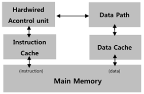 - 명령어의 수와 주소지정 방식을 최소화하여 제어장치의 구조를 간단하게 구성한 프로세스 구조 - 데이터 캐시와 명령어 캐시를 분리하여 사용 - Hardwired(하드웨어 내장) 방식 |