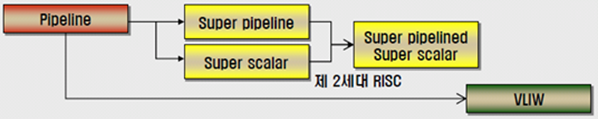 - 명령의 병렬처리 성능을 향상시키기 위해 처리 과정을 여러 단계로 세분화하여 동시에 서로 다른 작업을 수행하는 H/W 설계 기법