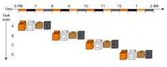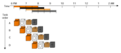 - 새로운 작업 셋이 이전 작업 셋의 첫번째 작업이 완료된 이후에 이어서 시작 - 특이 시점에 모든 자원들이 사용 |
