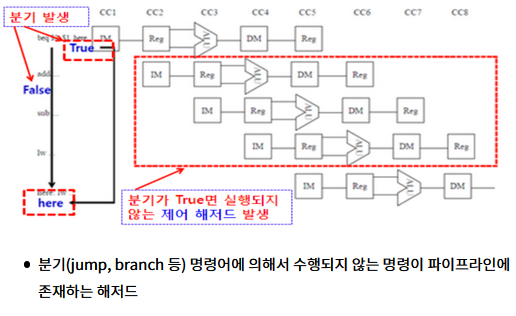 - 분기(Jump, Branch 등) 명령어에 의해서 발생 - 분기를 결정된 시점에, 잘못된 명령이 파이프라인에 있기 때문에 발생 |