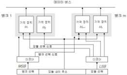 - 하위 비트들에 의해 모듈이 선택, 상위 비트들은 각 모듈내 주소 - 장점 : 다수의 모듈 동시 동작 가능 - 단점 : 새로운 메모리 뱅크 추가 시 전체에 영향 |