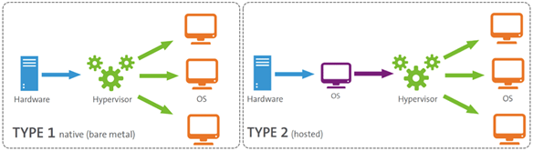 - 하이퍼바이저의 위치 및 역할 차이에 따라 Type1, Type2로 구분