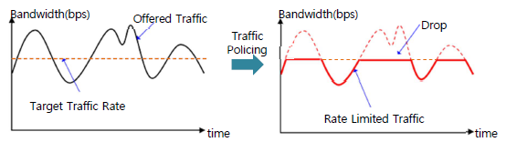 - 미리 정의된 기준을 초과하는 트래픽은 버림으로써 트래픽 대역폭을 제한하는 QoS 기술 |
