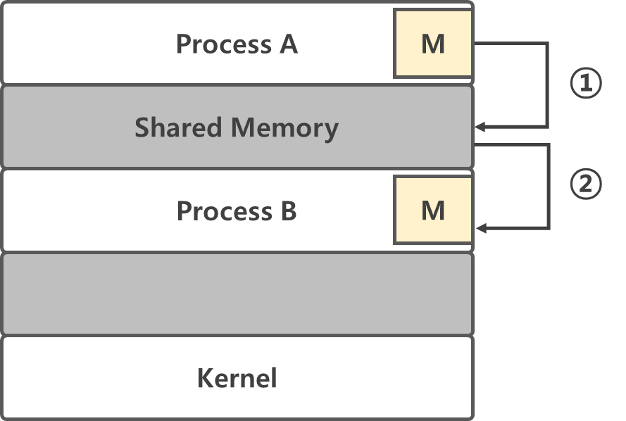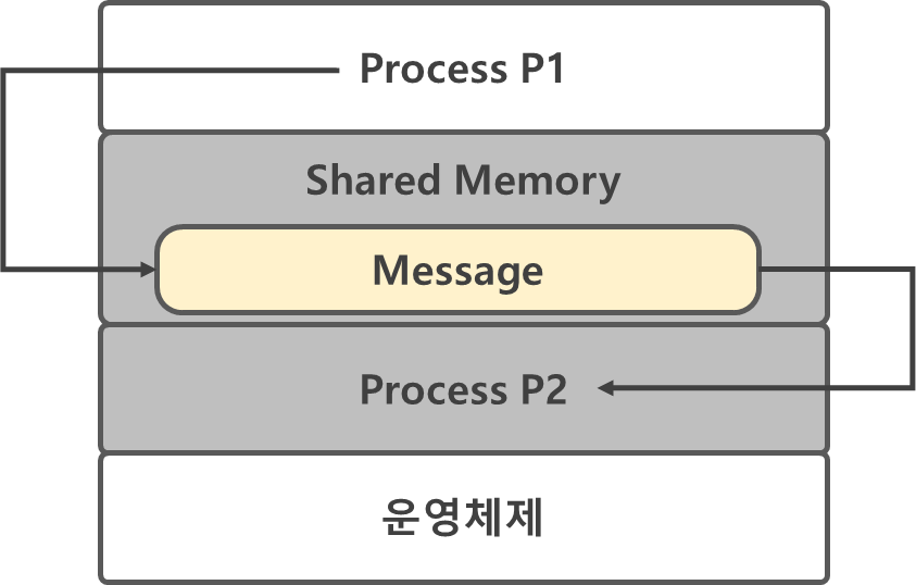 | 개념 | - 프로세스 간 메시지 교환 | - 공유 메모리 이용 정보 교환 |