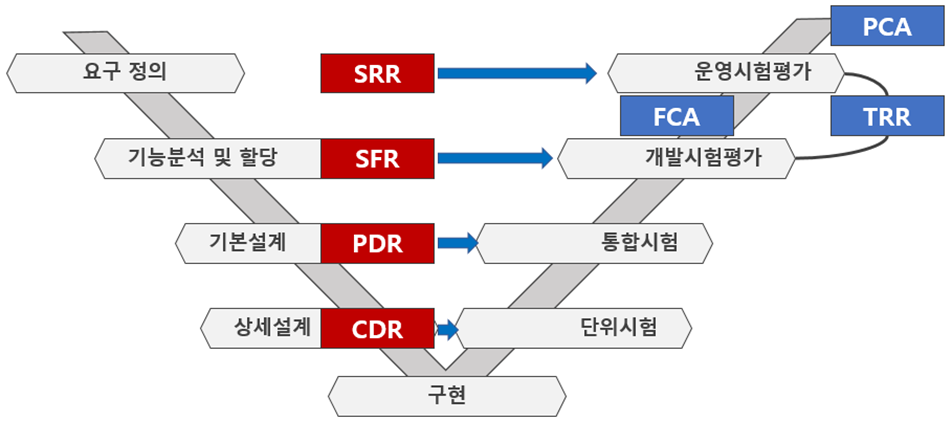 | 설계 | 기본설계검토 (PDR, Preliminary Design Review) |