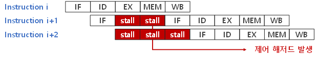 | 설명 | - Jump와 같은 분기 명령, Branch 명령에 의해 발생하는 해저드 - 분기(Jump, Branch) 명령어에 의해서 수행되지 않는 명령이 파이프라인에 존재하는 해저드 |