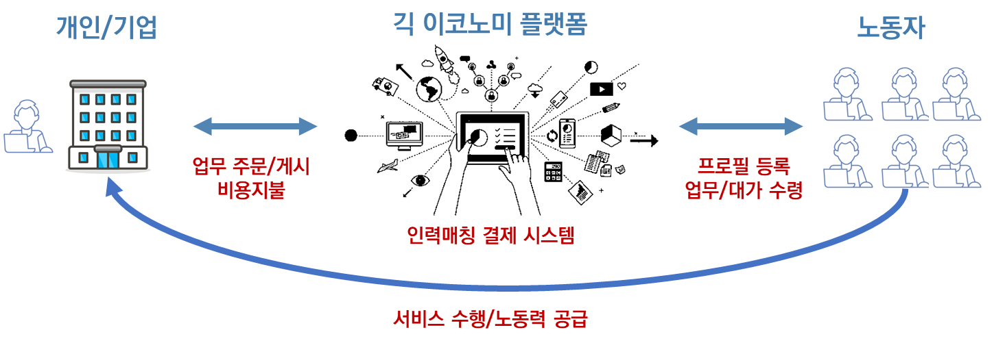 - 개인/기업이 긱 이코노미 플랫폼을 통해 노동력을 적시에 배치 및 운영 가능