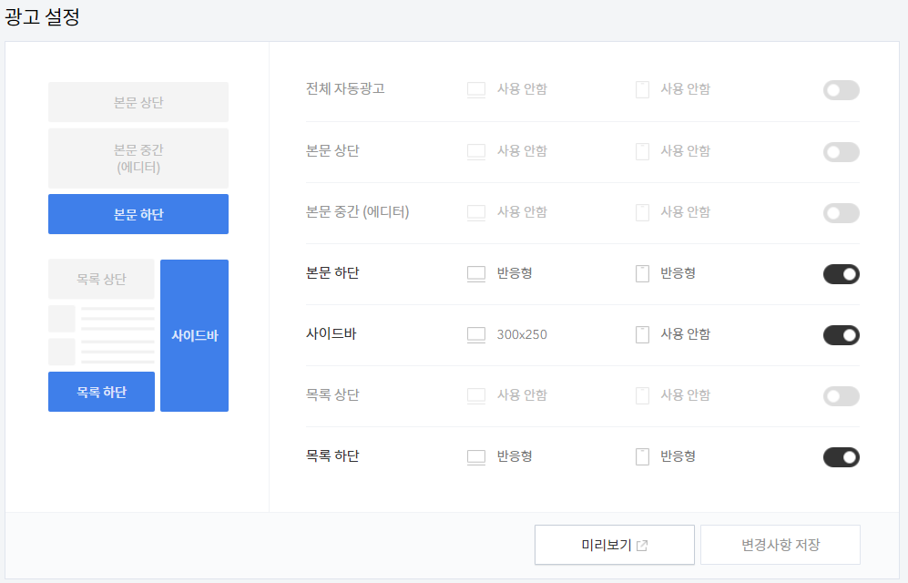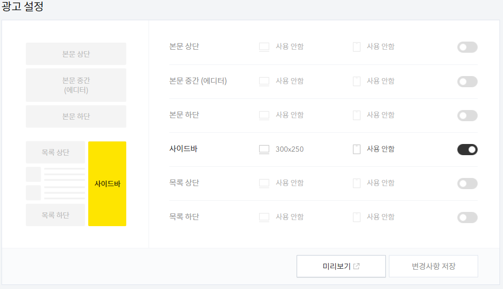 구글 애드센스는 목록 하단과 사이드바, 본문 하단에 광고를 배치했습니다.