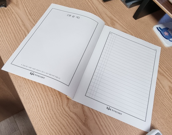 학원에서는 책상을 넓게 사용하는 경우가 많아서 답안을 펼쳐서 작성해도 큰 문제가 되지 않지만, 시험장의 책상은 좁습니다.