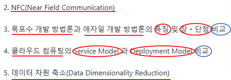 먼저, 1교시형의 2번과 5번 문제는 I단락에 해당하는 정의를 작성하고, 2단락에는 구성도, 프로세스, 유형 등 해당 토픽과 관련된 내용을 잘 작성하면 됩니다.